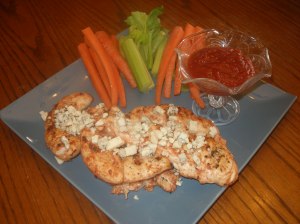 Grilled Buffalo Chicken Strips with Bleu Cheese Crumbles