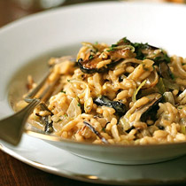 It was mixed with butternut squash. While farro can be tricky to find (Whole Foods has it, and Publix carries it at times), it is a wonderful side dish. Check out Giada’s recipe for a Mediterranean-style farro.