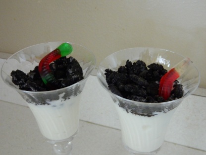 3. Dirt– The traditional kid favorite redone with organic vanilla yogurt, Whole Foods’ 365 chocolate sandwich cookies, and an organic gummy worm.