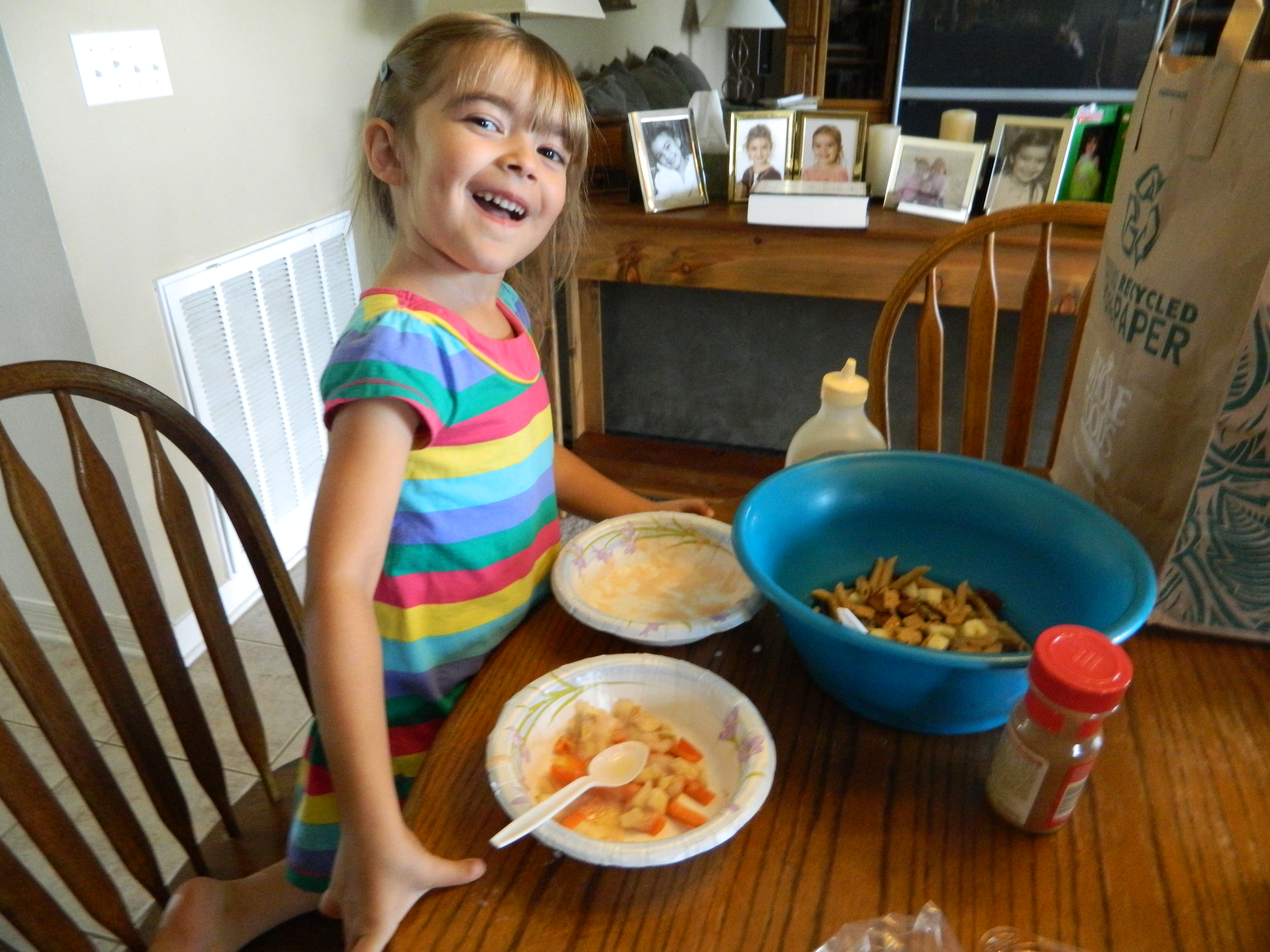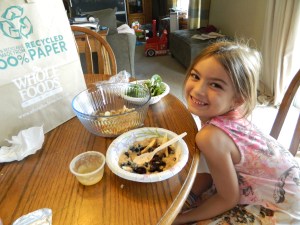 While I told them they must eat whatever they created, Anna did resort to asking for something else for lunch! She was very adventurous and tried several bites of each of her dishes yet they ended up in the trash. I guess this was a learning experience for her! Aleyah ate almost everything she made, leaving only a few bites left. They truly had a blast and so This will become a weekly summertime “game”.
