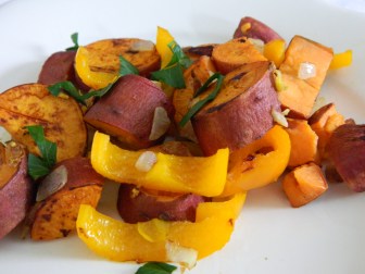 Last week, I posted my recipe for sweet potato home fries. I have made this a couple of times since then, and it has become one of my new favorite go-to mini meals. My snacks always contain a protein with my carbs, so what I am loving right now is topping some cold, 2% cottage cheese (I use Friendship or Organic Valley- both are all-natural) with the warm sweet potatoes and a dash of hot sauce. Make this a complete meal by adding a green salad with an all-natural dressing.