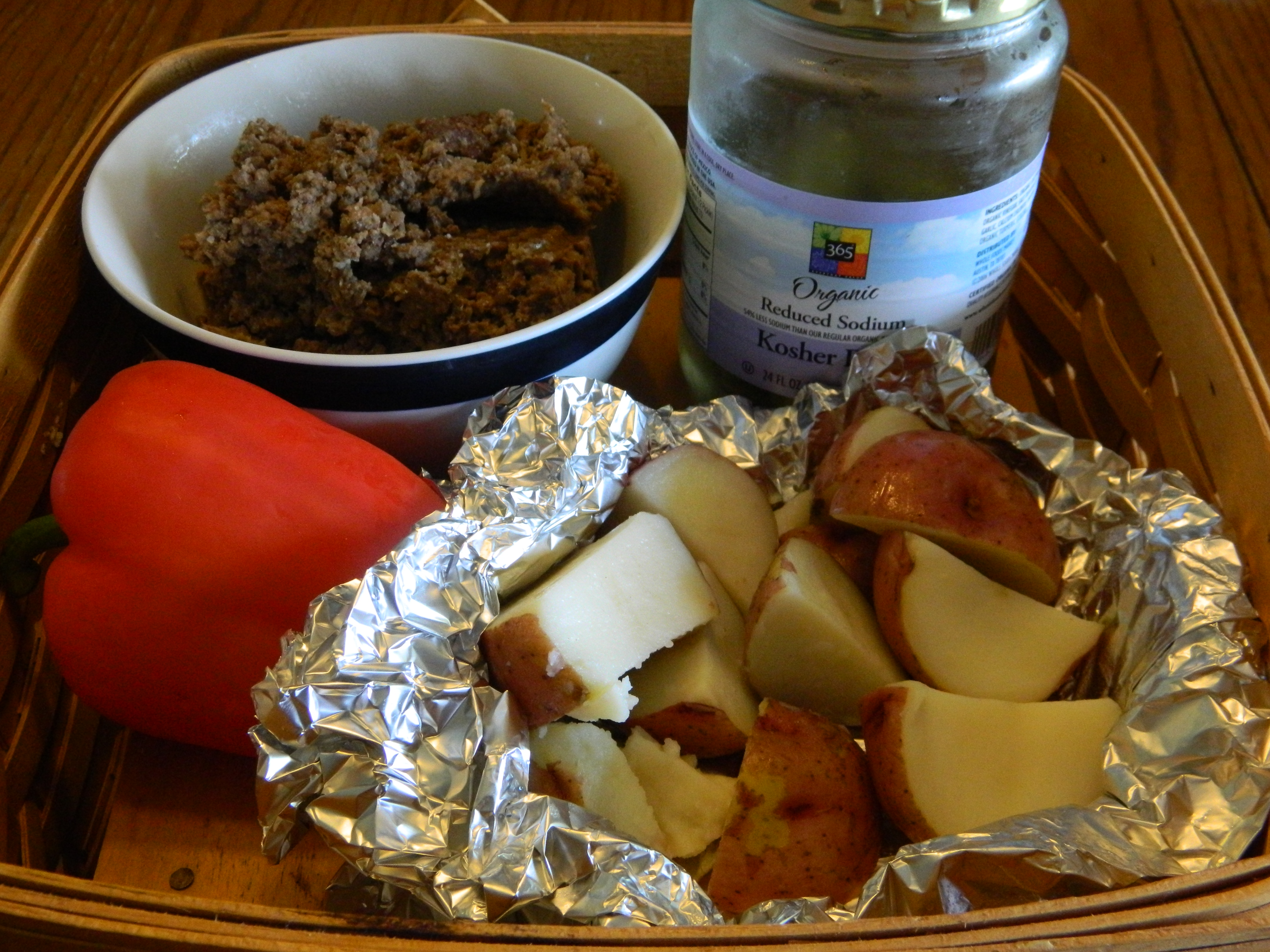 For our lunchtime session of “Chopped”, I gave my girls pickles, baked red potatoes, leftover taco meat, and a red pepper. They HAD to use each of these ingredients, but were able to use additional items from the kitchen. Aleyah’s creation was a semi-hollowed-out potato stuffed with meat and topped with melted, grated cheese and red pepper slices topped with chopped carrots and pickles. She also added a slice pf pita topped with hummus and pretzel pieces.