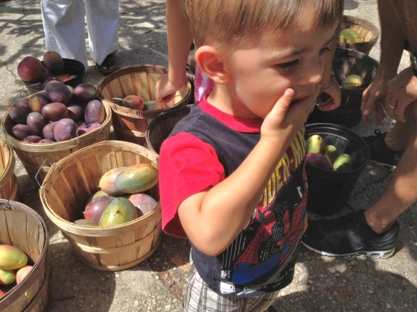 Every summer we take the scenic drive up to our favorite mango spot. There is a family that has mango tress galore on their property and sell to the locals during the summer. For $20 we get a large bucket of various mangoes. The free samples were gnawed upon by my children until there was just a sliver of soggy mango skin left. We have been enjoying fresh mangoes as well as mango smoothies throughout the week!