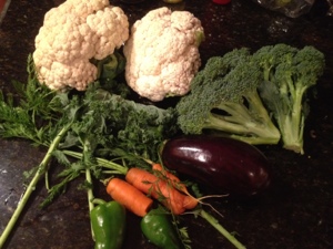 Thank you to my mom and stepdad for the wonderful bounty of vegetables that they harvested from their garden. This assortment is for us, and they still have more!