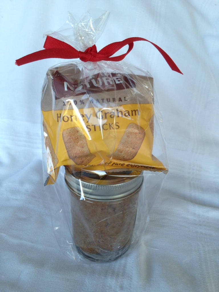 For $10, you will receive your choice of hummus in a mason jar, topped with either a bag of all-natural graham crackers or an apple, and tied up with festive bows. If you are interested in placing an order, please email me at: