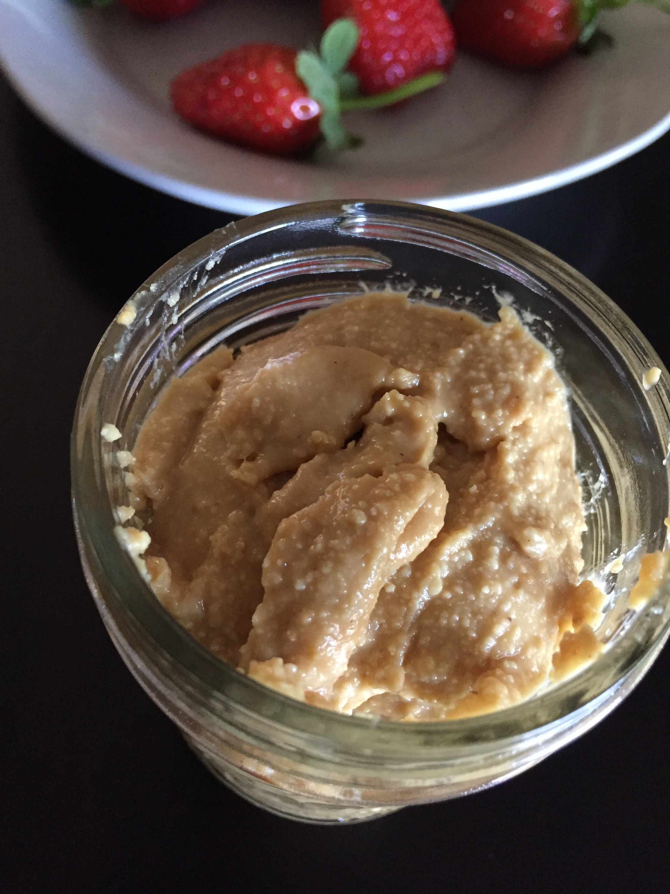 Homemade nut butters are not time-consuming to make…the food processor does all the work! It takes about 5 minutes or so for the nuts to grind into the creamy butter consistency. For peanut butter, you need to use dry roasted nuts. BUT BE CAREFUL! Some brands use preservatives (yes, Planters is one of them) so I actually buy the dry roasted peanuts at Aldi because the ingredients are: Peanuts. 🙂